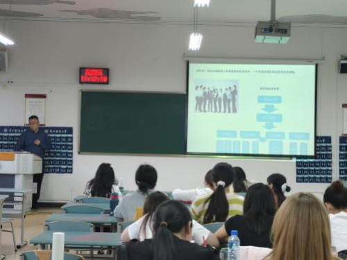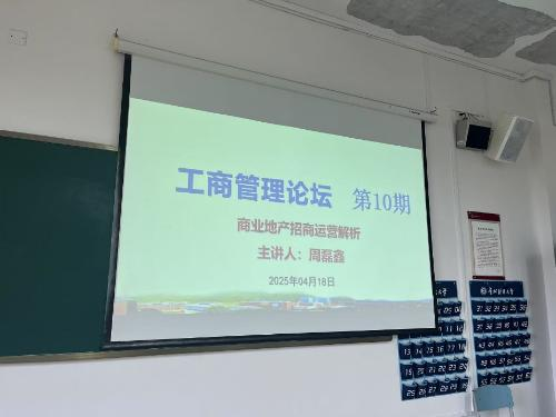 2025年4月18日晚,英国365集团公司官网在崇德楼420教室成功举办第十期"工商管理论坛"。本次论坛以"商业地产招商运营解析"为主题,特邀贵州省群升置业有限公司副总经理周磊鑫担任主讲嘉宾,公司党委副书记何瑞主持,2024级MBA全体同学参与学习交流。
