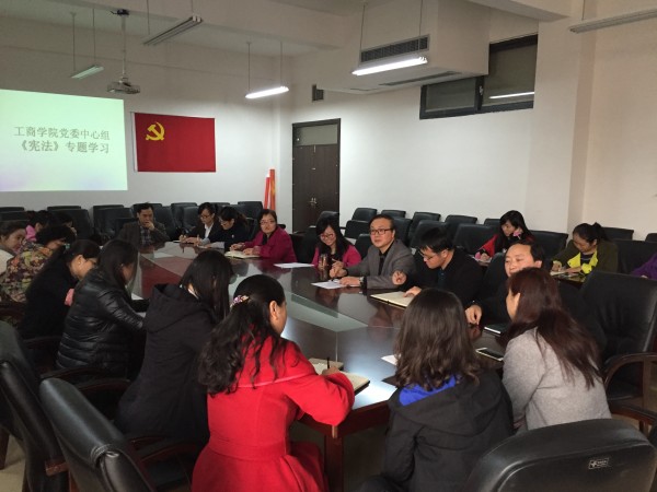 为贯彻落实党的十八届四中全会精神,增强宪法观念,2015年11月7日,工商公司党委中心组开展专题学习会,集中学习了《宪法》和习近平总书记有关讲话精神。