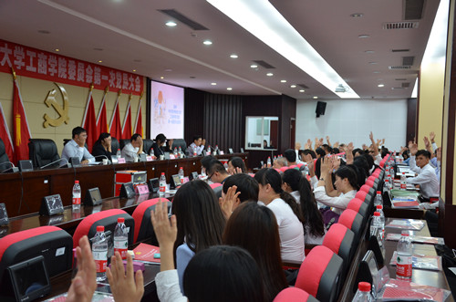 2016年8月31日上午,工商公司第一次党员大会在崇德楼115会议室胜利召开。