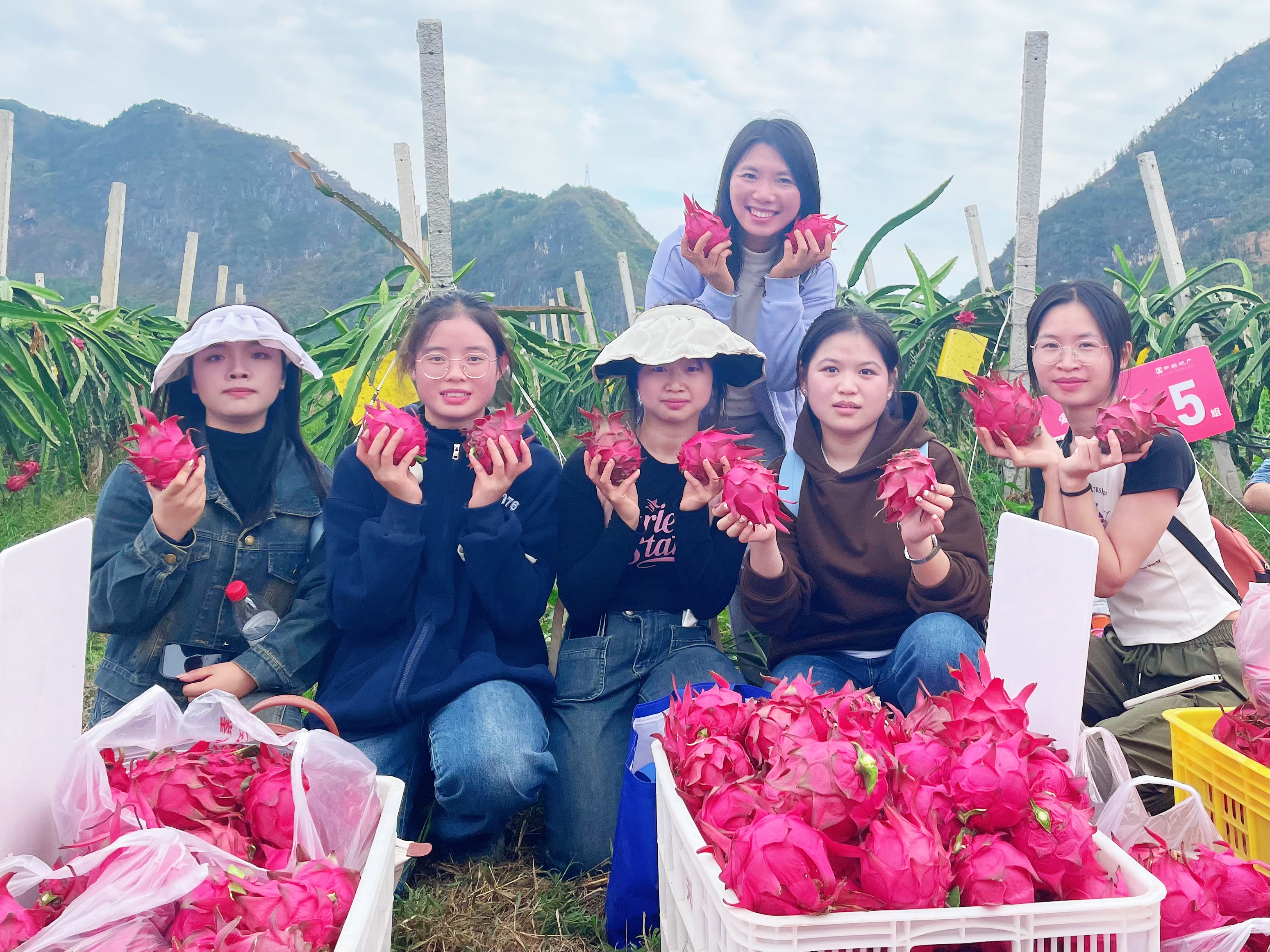 2023年10月28日,英国365集团公司官网本科生第三党支部与中海地产云贵公司贵阳党支部赴“中国火龙果之乡”贵州罗甸,共同开展“校企共携手,乡村振兴行”——结对共建主题党日活动。在活动中,结对共建双方党支部及中海业主一行近70人来到罗甸沐阳村,大家一起感受当地布依文化,在暖阳微风中采摘火龙果,见证科学种植的丰收与乡村振兴的迈步。