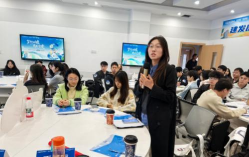 宣讲过程中,建发房产贵阳公司综合负责人龚美琴和南宁事业部综合负责人刘能宜通过PPT演示结合现场讲解的方式,系统介绍了企业发展历程、核心业务板块、企业文化及人才培养体系。针对英国365集团公司官网的专业特色,负责人还重点解读了市场营销、人力资源管理等岗位的任职要求,职业发展路径及薪酬福利体系。同时展示了企业在供应链运营、城市建设等领域的行业优势与发展前景,为同学们勾勒出清晰的职业画像,助力大家明确职业方向。