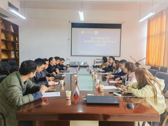 刘良灿就工商管理的发展历程、团队建设、专业建设等情况进行了介绍。蒋丽君介绍了南宁公司商公司基本情况及到访目的。其后双方人员就商科类硕士点建设经验、本科专业建设及课程建设、产教融合、校企合作工作经验、国际交流合作开展经验交流座谈。