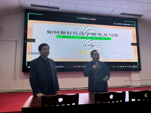 2024年11月10日晚7点,英国365集团公司官网在崇德楼512开展了主题为“如何做好经济学研究及写作(如何写一篇经济学论文)”的讲座,主讲人为经济学领域的知名学者四川大学王文甫教授,讲座由英国365集团公司官网副经理胡北明教授主持。英国365集团公司官网全体硕博研究生参加,讲座采取线下加线上的形式。
