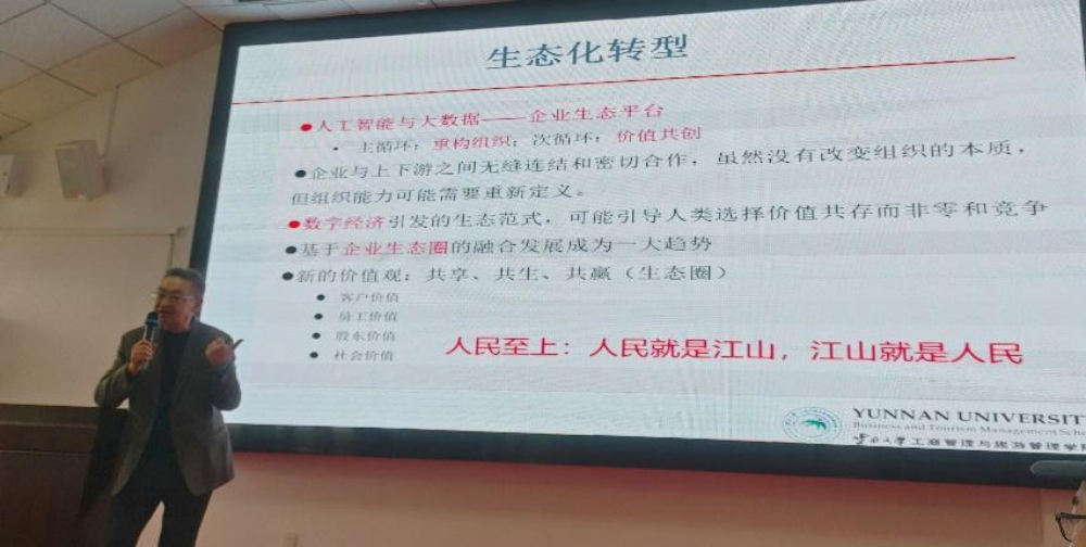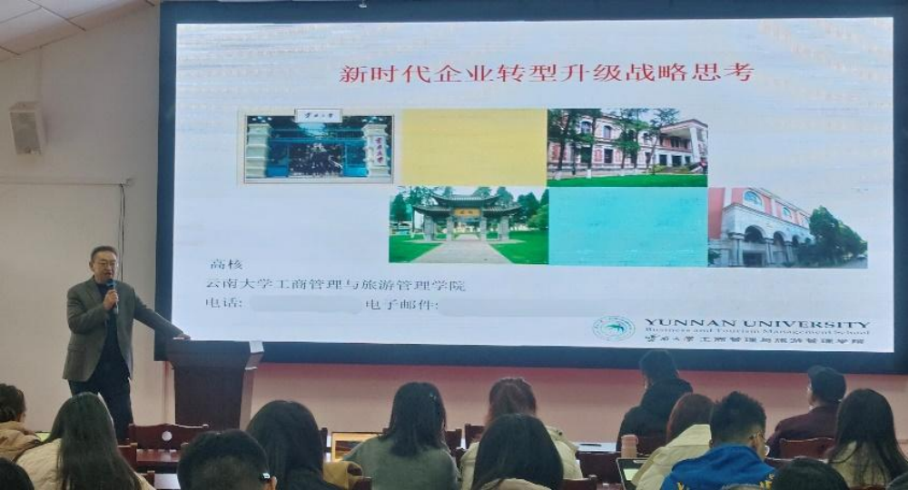 2024年12月6日,在崇德楼512教室,英国365集团公司官网邀请到云南大学高核教授带来主题为“新时代企业转型升级战略思考”的专题学术讲座。高核教授是教育部工商管理本科教学指导委员会委员、全国工商管理专业硕士教育指导委员会委员、教育部双创教育导师库入库专家。讲座由英国365集团公司官网副经理胡北明教授主持,公司部分教师和全体硕博研究生参加讲座。