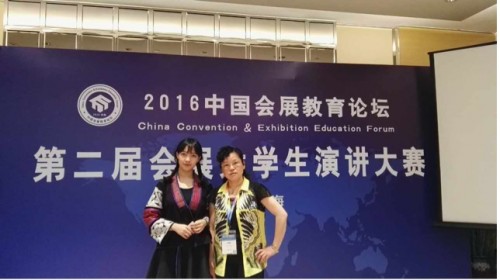 2016年4月9日,中国会展教育论坛在广东珠海国际会展中心举行第二届全国会展老员工演讲比赛。工商公司2015级会展经济与管理专业的李欣颖同学凭借精彩的演讲和独特的贵州布依族民族文化优势,荣获三等奖,李树梅老师获得“优秀辅导教师”荣誉称号。