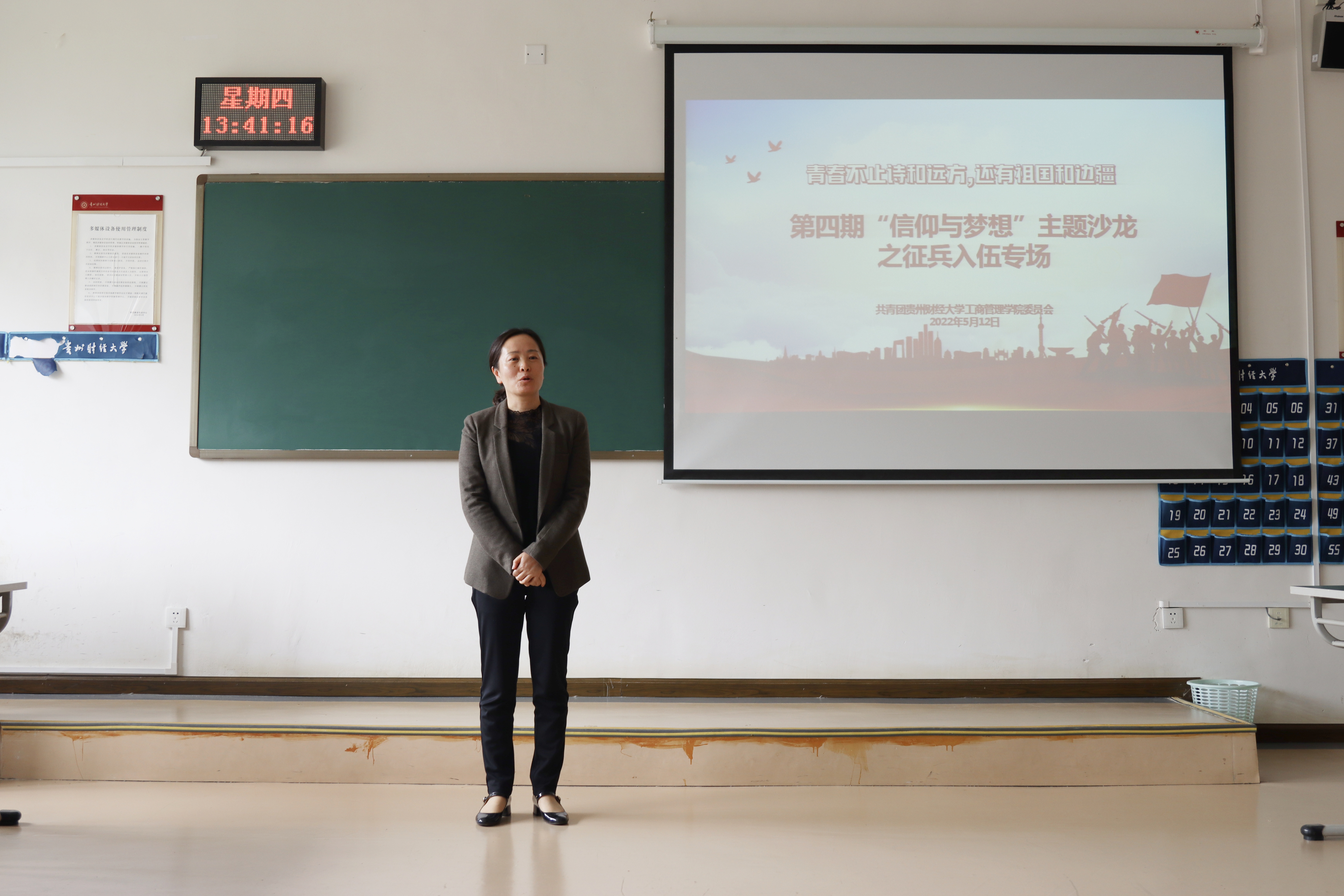 杨阳首先提议全场用热烈的掌声感谢胡细根老师数十年如一日从事征兵工作的坚守和付出。其次,希望广大青年坚定不移听党话、跟党走,踊跃应征入伍,让军旅生涯成为青春浓墨重彩的一笔。最后,她发出有为青年当立志从军的号召,希望同学们把满腔热血投身火热军营,在青春的赛道上跑出新时代工商青年的最好成绩。
