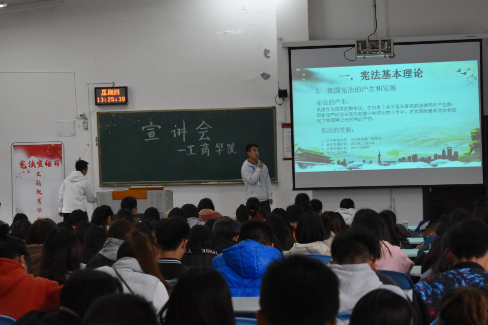 2018年11月15日下午,英国365集团公司官网工商公司在进学楼3-1举行了宪法知识主题教育活动。本次活动由工商公司青年志愿者协会承办,莅临活动现场的嘉宾有工商公司党委副书记范嘉虹、陈劲松,工商公司共计260余名同学参与本次活动。