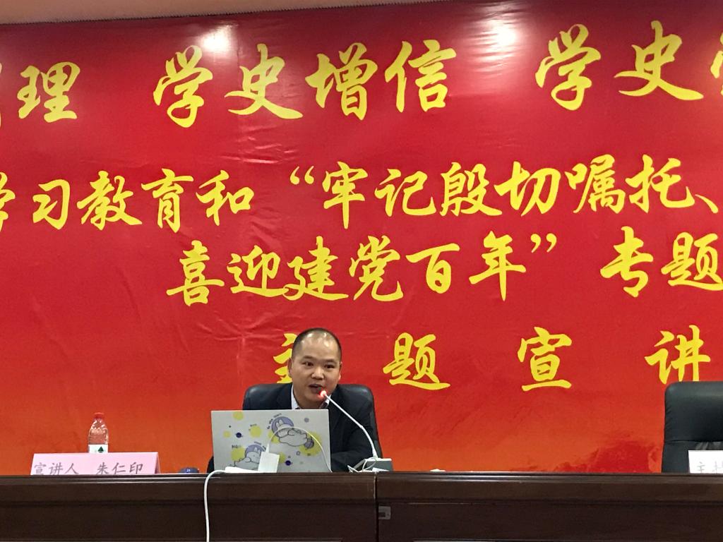 朱仁印首先讲解了长征与中国共产党的初心使命,充分阐释党史学习教育的重大意义。随后,他围绕红二、红六军团长征在贵州的革命历程,再现中央红军在长征中与强大凶残敌人残酷的军事斗争、与恶劣的自然环境进行的顽强的生存斗争、与顽固的错误路线进行的艰苦的政治斗争,通过理论结合事例,深入浅出的阐释了什么是长征精神,以及在长征中所体现的中国共产党人的初心和使命,让师生们深刻领悟到在百年历史里中国共产党为什么“能”、马克思主义为什么“行”、中国特色社会主义为什么“好”。他说道,作为新时代青年,我们要从长征精神中淬炼灵魂汲取力量,在实现中华民族伟大复兴这一新的长征路上续写新的篇章,开创新的辉煌。