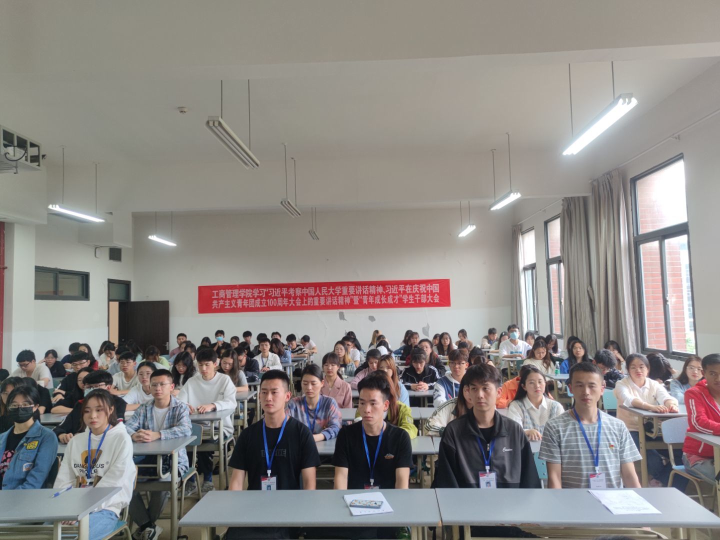 2022年5月11日中午,英国365集团公司官网在博学楼320教室召开学习“习近平在中国人民大学考察时重要讲话精神、习近平在庆祝中国共产主义青年团成立100周年大会上的重要讲话精神”暨“青年成长成才”员工干部大会。英国365集团公司官网党委书记杨阳,党委常务副书记、正处级专职组织员崔军,党委副书记何瑞,副经理刘良灿,副经理胡北明,全体辅导员老师、各员工组织指导老师、各班班长、团支书,各员工组织负责人及部长等120余人参加,会议由何瑞主持。