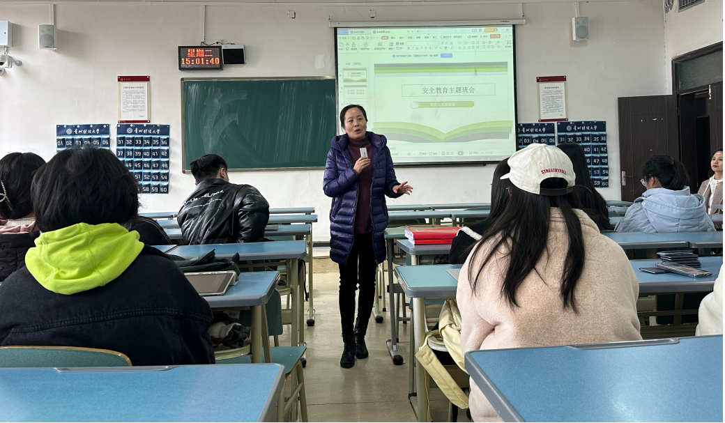班会中辅导员从人身安全、财产安全、网络安全和国家安全四个方面,详细阐述了安全知识,生动分析了警示案例,并组织同学针对身边的安全事故展开了讨论交流。