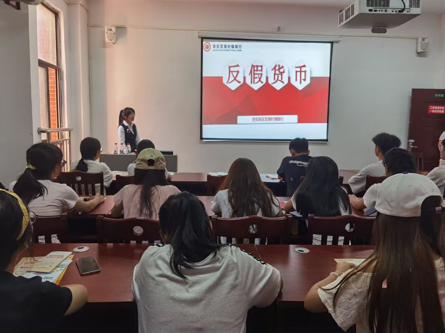 活动邀请贵安新区发展村镇银行张梦担任主讲人。宣讲中,张梦围绕四大核心内容展开:一是“人民币图样规范使用”,明确人民币图样不可随意滥用的法律边界;二是“防伪材料与技术保护”,强调人民币特有防伪技术禁止仿制的相关规定;三是“现金机具国标要求”,指导大家选择符合国家标准的现金处理设备;四是“人民币防伪特征解析”,结合多组假币实物对比,直观展示真币的关键防伪点。