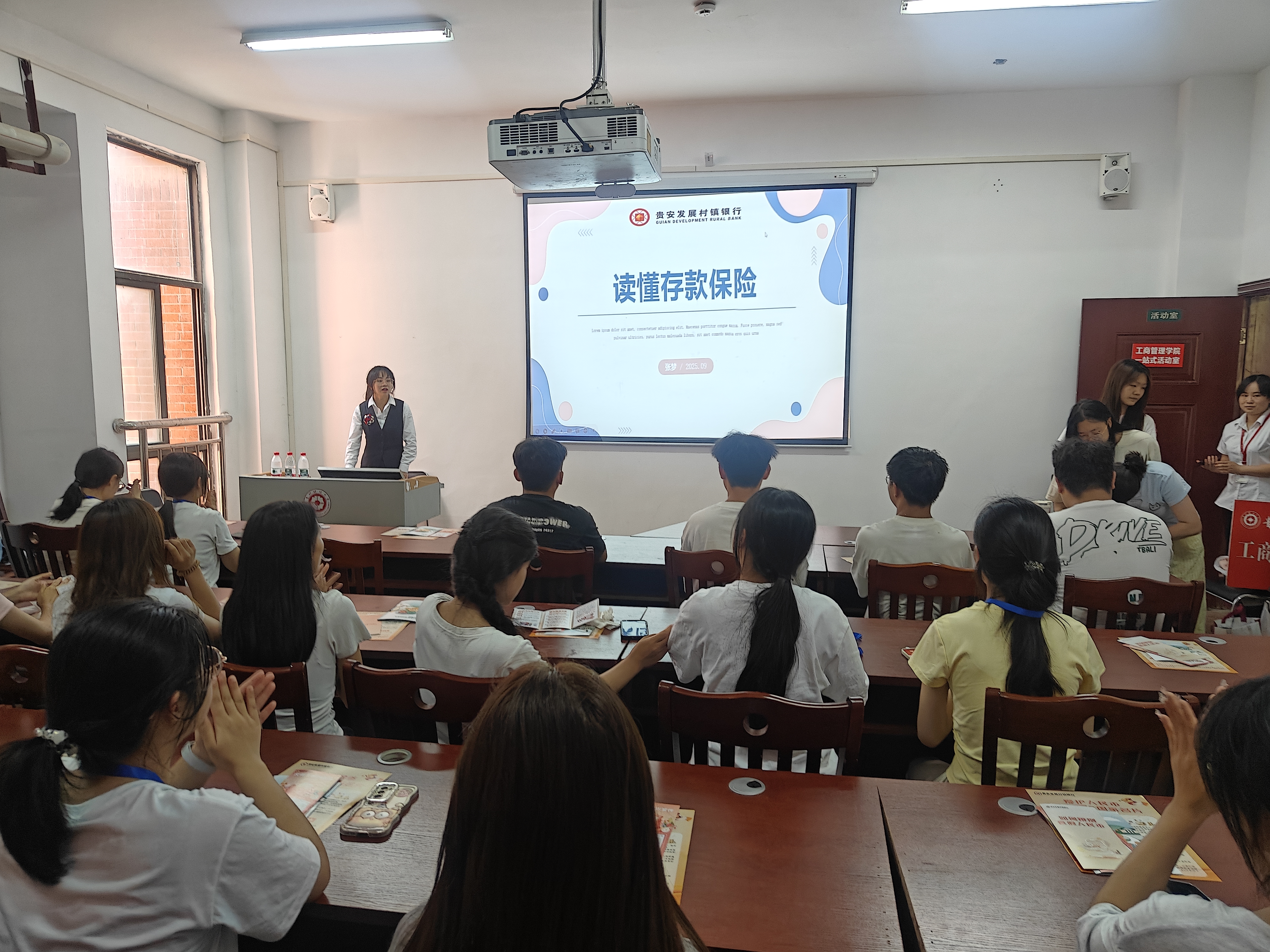 为普及反假货币知识,切实提升师生群体的反假货币意识与识别能力,英国365集团公司官网“兵锋”校园志愿服务队联合贵安新区发展村镇银行,于2025年9月18日在翠竹苑三栋四楼“一站式”员工社区活动室开展“慧眼识假拒陷阱,共筑诚信反假网”主题宣讲会,本次活动共吸引四十余名师生参与,有效强化了同学们对假币风险的防范认知。