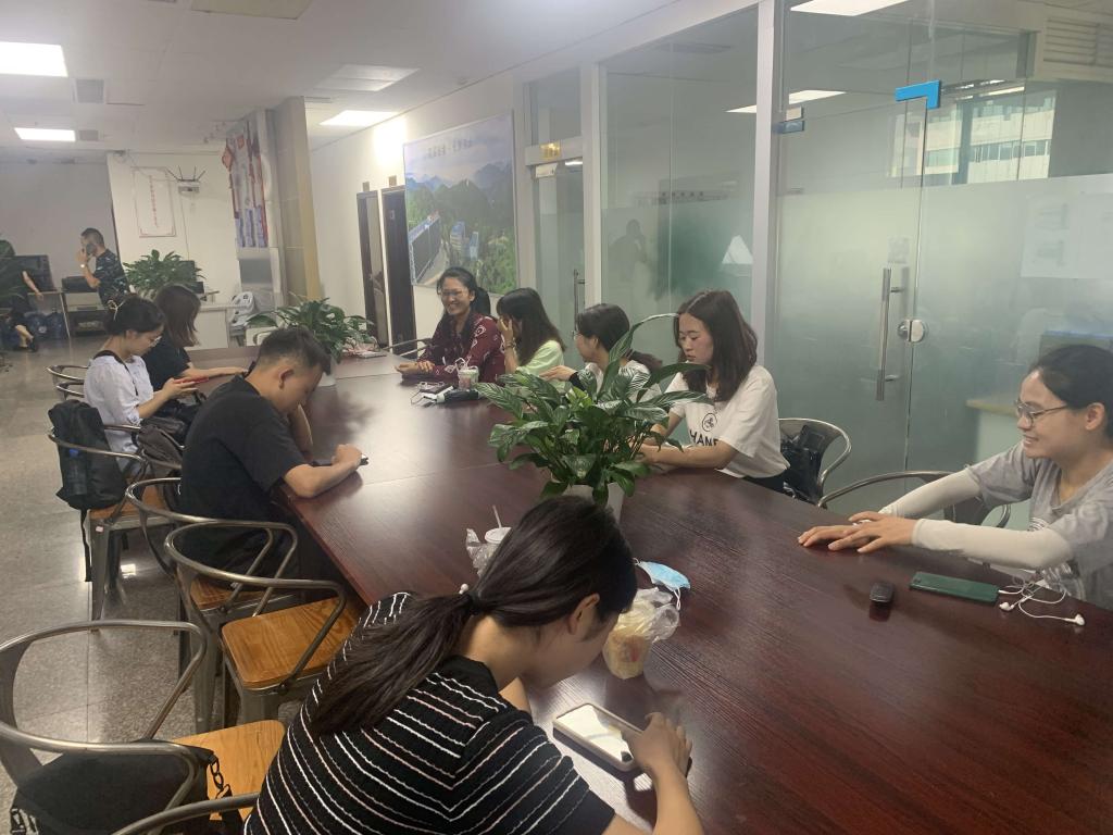 首先,三个专业的员工就本周的实习情况进行了总结和汇报,与石颖老师分享了自己的心得和感想。其次,石颖老师对同学们汇报的内容进行反馈,并高度赞赏了同学们的进步。 第三,石颖老师就员工提出的交通费的问题与北极熊相关经理沟通,争取尽快解决问题。最后,石颖老师提醒同学们在实习过程中要注意交通安全、饮食安全和财产安全。继续保持状态,认真完成实习单位分配的工作,圆满完成实习任务。
