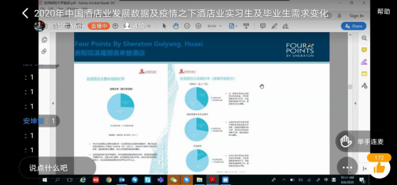 此后,张总监又为我们解答了疫情之下酒店业实习生和毕业生的需求变化。此次疫情对酒店行业的冲击较大,需要较长的周期来恢复生机。酒店行业受到疫情冲击,也随之影响了实习生和毕业生的招收。张总监用一项具体,详细的数据来为我们展示这一影响。数据表示,由于疫情影响,对人数的需求量下降,需要具备的素质也更加全面。张总监表示由于疫情的突然来袭,打乱了许多的计划,未来的不确定变多。但是我们应该冷静面对大势,利用时间充实自己,随机应变,面对疫情所带来的冲击。