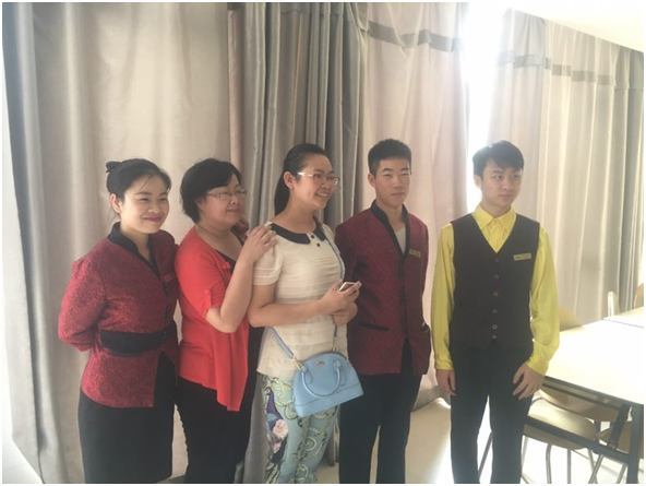 2018年8月20日,公司酒店管理教研室谢飞老师和会展教研室吴倩老师前往群升豪生酒店探望实习生。公司2015级酒店和会展专业的48名员工于7月初走上了酒店实习的岗位,开始了他们在酒店实际操作的实习学习生涯。在实习期间指导老师还通过实地看望、网络交流、电话联系等方式,鼓励、指导实习生并解决了他们在酒店的实际困难。