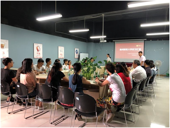 为加强专业实习过程监控,全面了解公司专业实习情况,提高专业实习质量, 2018年8月17日上午十点,工商公司袁开福副经理、工商管理副系主任王祯敏、物流教研室彭甜老师、工商教研室章志杰老师、刘江林老师来到贵州国安社区智诚连锁购物有限责任公司走访看望实习生并在总部大会议室参加实习员工的实习成果汇报。
