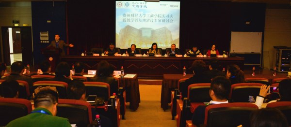 11月11日,工商公司实习实践教学暨基地建设专家研讨会在鹿冲关校区松风苑学术交流中心召开。来自荔波县人民政府、贵州智诚连锁购物、茅台集团、喜来登大酒店、沃尔玛等42家知名企业的领导,教务处处长李汉文教授,工商公司领导肖小虹范嘉虹、陈劲松、杨春宇、胡北明等130余人参加会议。会议由副经理胡北明主持。