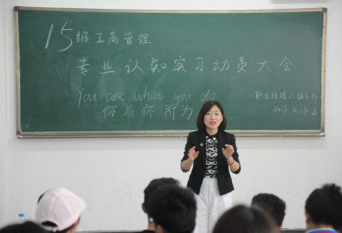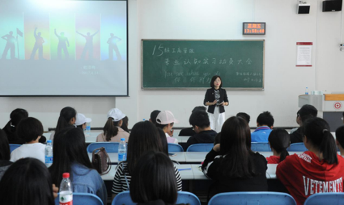 2017年4月14日下午,15级工商管理专业全体同学参加了专业认知实习动员大会和企业家座谈会活动。本次座谈会邀请了担任高速广告有限公司总经理助理的赖泽梅女士担任主讲人。