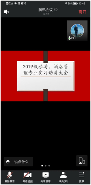 为进一步做好旅游系2019级员工专业实习工作,帮助员工成功通过面试,获得更适合的实习岗位,2022年6月28日下午13时30分,旅游系通过腾讯会议召开了2019级专业实习动员暨双选会。旅游管理专业、酒店管理专业员工参加,会议由旅游系副主任朱靓主持。