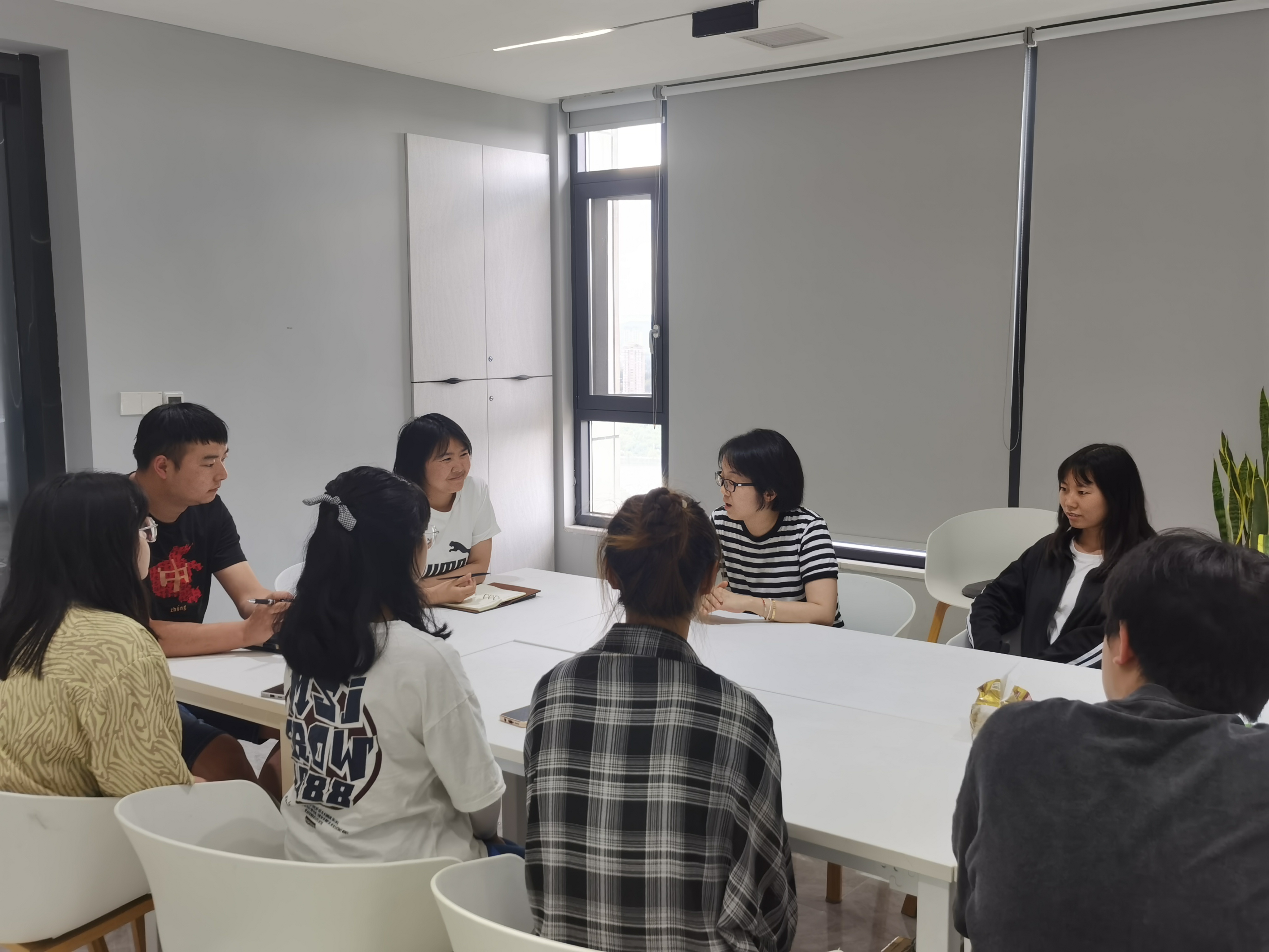 毛菁菁与贵州微联盟党支部书记张兴瑞和贵州微联盟联合创始人、内容总监余萍女士以及本组的六位实习生进行了交流,在交流中,实习生的表现得到了实习单位的认可。同时,实习生也讲解了她们在这一周的实习经历与收获等,实习生表示,通过专业实习,学以致用,实践能力和创新能力得到一定的锻炼,综合素质得到全面提升,同时也发现了理论知识和实际工作经验的欠缺,明确了今后努力的方向,为顺利就业打下良好的基础。