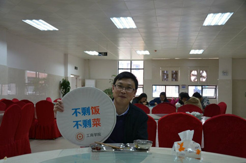 公司党委副书记肖建宗为“光盘一族”代言,工商公司党政主要领导和公司教职工们也积极主动地参与活动,切实践行光盘行动。