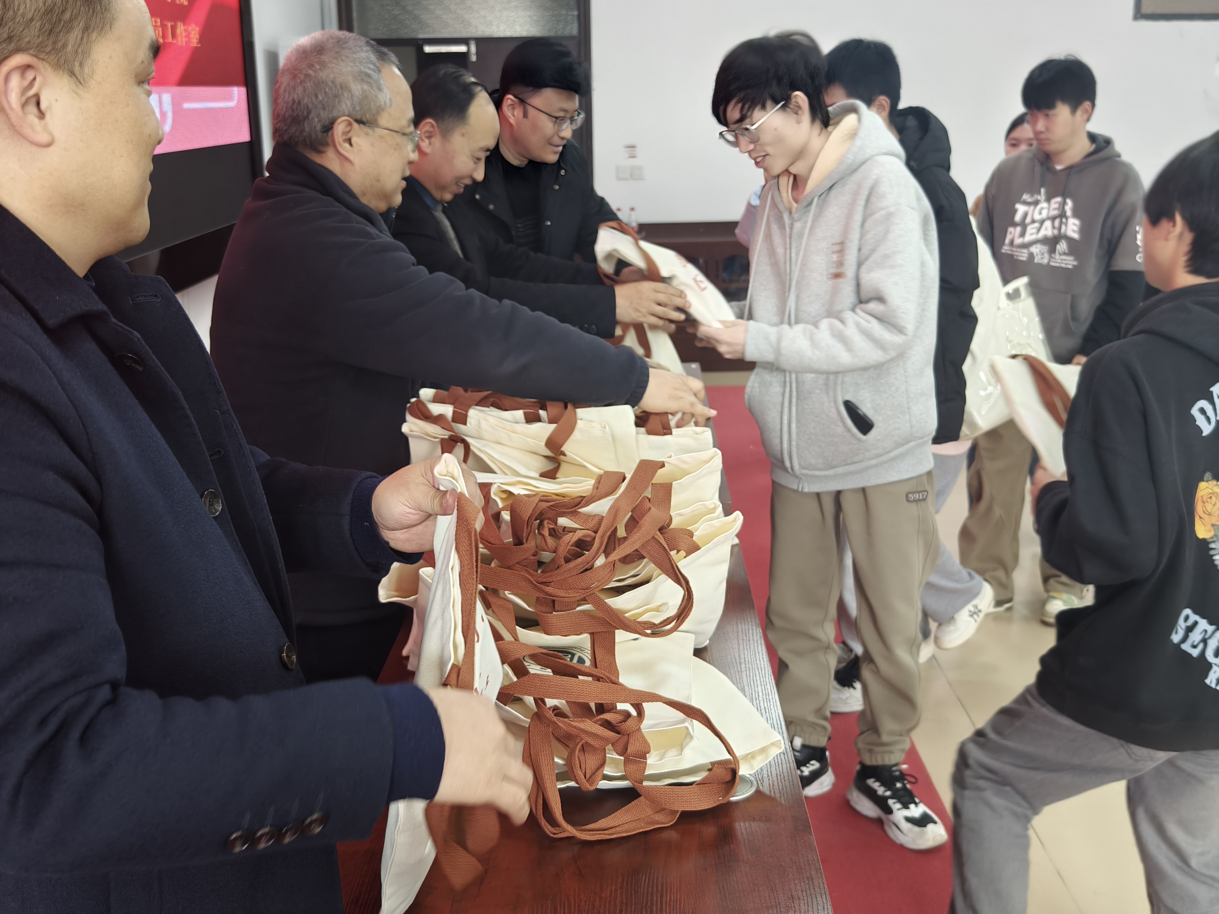 刘良灿充分肯定了每一位考研学子逐梦前行所付出的汗水和努力,分享了专业的考试规划和经验,鼓励同学们积极提升自我,进行学术深造。随后2025届考研上岸的学长学姐通过视频的形式给出温暖建议,分享了考研冲刺阶段调节心态的方法,鼓励他们追逐梦想、努力向前。本科生第一党支部杨红莲同志作为党员代表向2026届考研的学长学姐们送上了真挚祝福。最后,领导们为考研员工逐一发放“加油能量包”,鼓励他们充满能量,以更加饱满的热情和更加坚定的信念迎接考试。